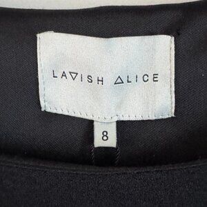 Sophisticated and elegant Lavish Alice dress in classic black. Features a chic cape overlay detail for a modern, statement look. Perfect for cocktail parties, evening events, or a polished night out.