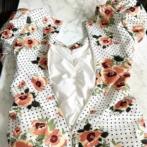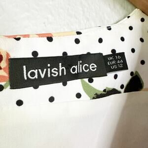 Gorgeous Lavish Alice mini dress in size 12! This dress features a delightful floral and polka dot pattern, adding a touch of whimsy to your wardrobe.