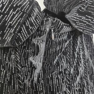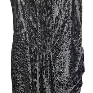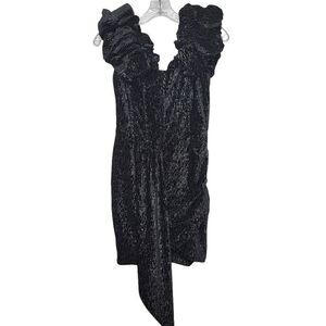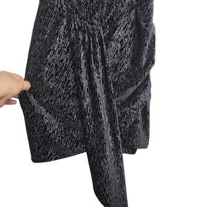 This minidress is crafted of crushed velvet, featuring short puff-sleeves and a draped fabric detail at the front.