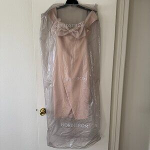 This dress is beautiful. Thick satin-like material. Lovely blush pink. Excellent quality.