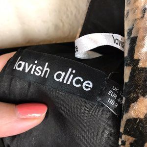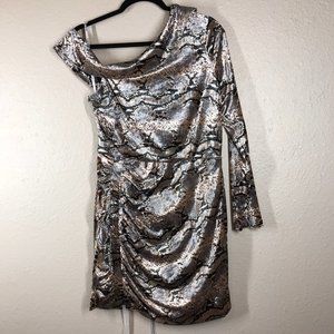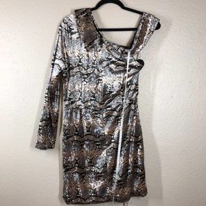 Lavish Alice Silvery Velvet Snake Print one-shoulder rouched mini dress, Size US 8