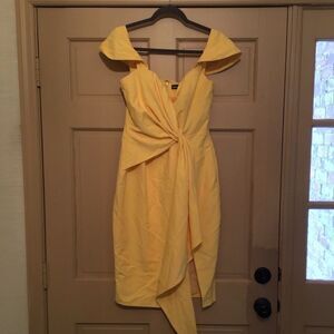 Lavish Alice Yellow Off Shoulder MIDI Dress