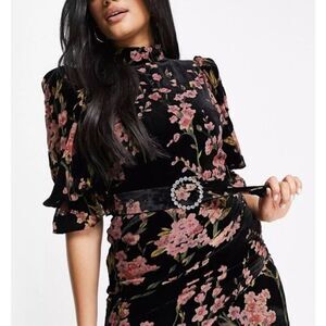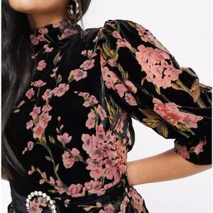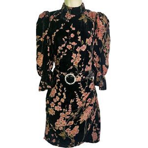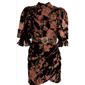 Lavish Alice black velvet devore high-neck balloon sleeve mini dress floral NWOT