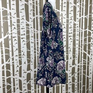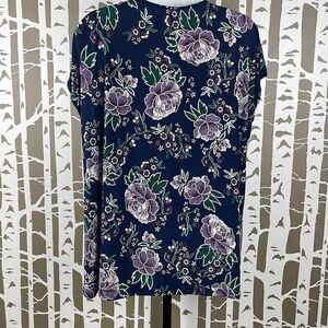 Measurements (laying flat) are approximately: 22.25" pit to pit, 24" across hemline, 8.5” sleeve length (bottom edge of neckline to end of sleeve), 27.25" top of shoulder down to hemline.