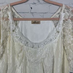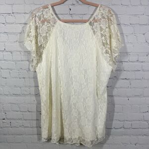 Lavish Tunic Lace Women Plus 3X Cream Romantic Femenine Crochet Cottage Blouse