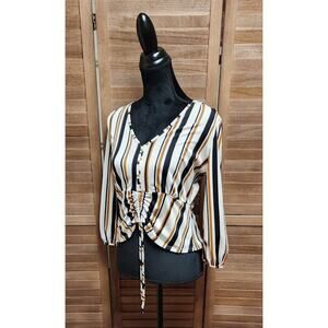 Lavish Womens Striped Balloon Sleeve, Front Tie, Cropped Top Size Medium Blouse