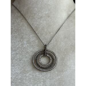 Lavish by TJM Sterling Silver Circles Pendant Necklace Crystal & Marcasite. The pendant necklace is in good vintage condition, see photos.