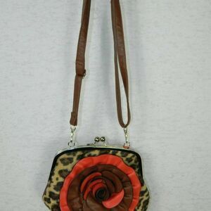 Lavive Purse Brown Red Animal Print with 3D Flower