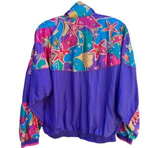 Lavon Vintage 80s Starfish Print High Collar Purple Swishy Windbreaker Jacket S