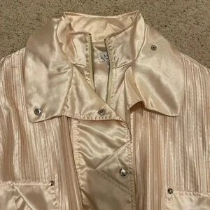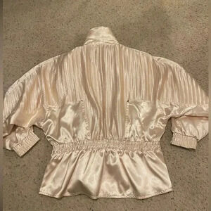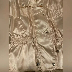 Lavon by Cheerful Corp Satin Cream 80s Bomber Jacket