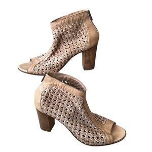 Lavorazione Artigiana Sundance Casta Woven Tan Leather Open Toe Ankle Boots 10