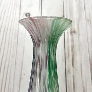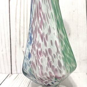 Lavorazione Murano Glass Bud Vase Fluted Twisted-Stem Blue Green Pink Speckled