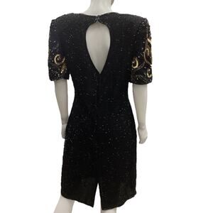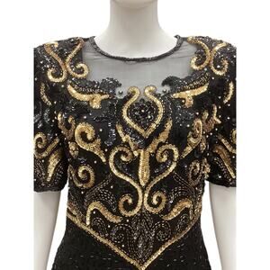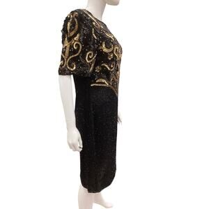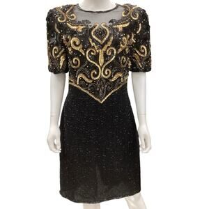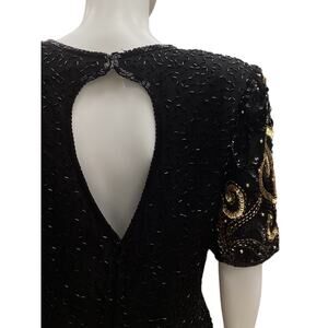 Lawerence Kazar VTG Dress Women’s Size Medium Silk Beaded in Black and Gold
