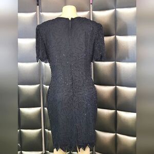 vintage 100% silk beaded dress. B. 3 7 W 29 hip 39 length 40