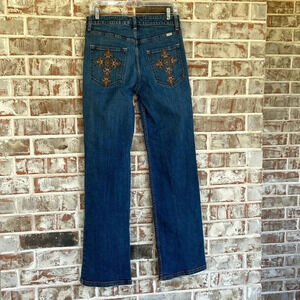 Lawman Blue Fleur-di-lis Embroidered Pockets Cowgirl Denim Vintage Jeans