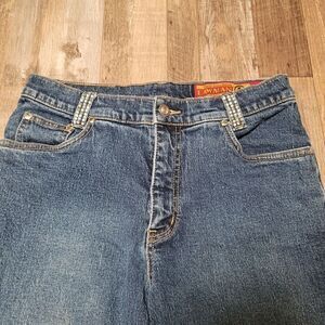 Lawman Western Size 9 Slim Fit Boot Cut Rhinestones Denim Blue Jeans Pants Women
