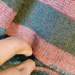 Southwest vibes. Women's vintage, multicolored, striped wool-blend blazer by Lawrence Bruce, size 12 petite. Wool, nylon and cotton blended fabric. Jacket is lined with front unopened pockets. Excellent pre-owned vintage condition; no flaws.
