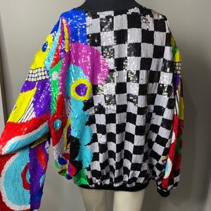 80’s Vintage Lawrence Kazar vintage bomber. Fully sequined! None missing, although a few sequins are loose, for the size and age of jacket it’s AMAZING quality. True to size. (2x)