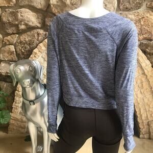 Layer 8 Cropped Long Sleeve Blue Gray Space Dye Top Women's Size Medium. Measurements: bust:19. length: 19