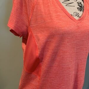 Performance polyester t-shirt in excellent condition. Orange. Mesh panels under arms and on back.