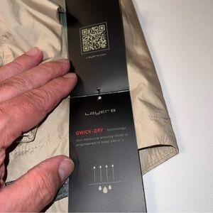 Available in a size M and in a unique green/tan color, this jacket is perfect for men who want to look and feel their best while staying comfortable. It is priced at $50 and is brand new with tags. Whether you're going on a hike or running errands around town, this Layer 8 Men's Windbreaker Jacket is the perfect choice.
