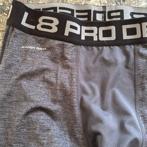 Layer 8 Pro Defend Qwick-Dry heather gray, mesh panels muscle support performance layering leggings. Logo elastic waistband. Medium. Excellent condition. Nonsmoking home.