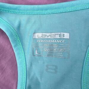 LAYER 8, size L, mint green racerback tank top. Quick Dry, Performance, polyester.