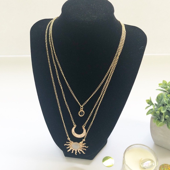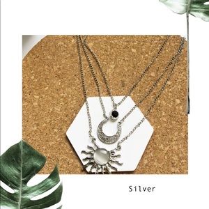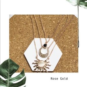 Layer Necklace Gold Silver Rose Gold Tone Moon Sun