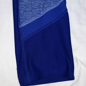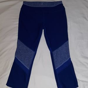 Layer 8 heathered blue, bright navy & mesh crop leggings in size medium. They measure unstretched waist 27", inseam 22", rise 9".