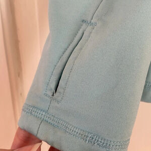 Layer 8 brand lined light blue workout top. This baby blue top features thumb holes (pictured) to keep you cozy! Fleece lined with dry fit quick dry technology makes this great athletic wear!