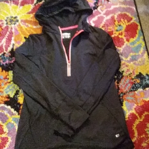 Great for cold weather workouts. This slighly insulated yet thin, quick-dry, hooded sweatshirt is in excellent condition.