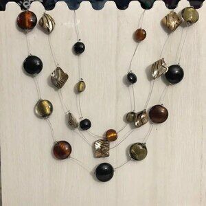 Layered Abalone MOP Beaded Wire Illusion Statement Necklace