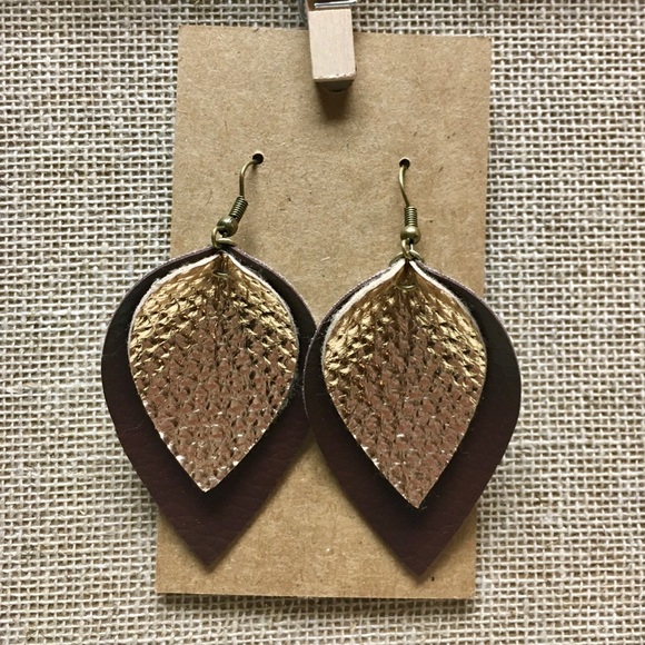 Perfect for any occasion. Layered brown and gold drop earring handmade here in TN. Nickel free!