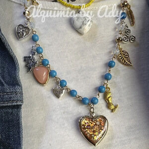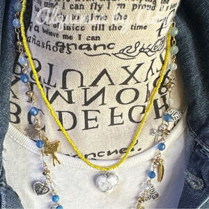 Layered Gold Howlite beaded maxamillion charms necklace maximalist bohemian