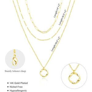 3Pcs Necklaces Set:The layered necklace is composed of a paperclip chain,a strip chain and a twist circle pendant necklace.As a stacked necklace,elegant and cute,gold layered necklace can match your styles freely,you can wear them together or separately.