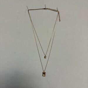 This elegant layered gold necklace features two rectangular gemstone pendants, offering a classic and sophisticated look. The adjustable chain ensures a perfect fit for various necklines, making it a versatile accessory for professional attire.