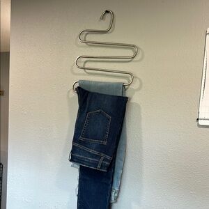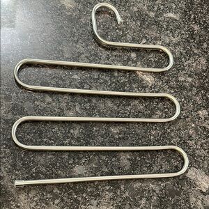 Add a touch of modern style to your home with this sleek silver metal organizer. Ideal for keeping your space tidy and stylish. Jeans Skirts Leggings Organize your closet, add to the pool for drying swim wear and hanging towels!! Lots of possibilities!!