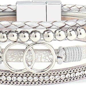 Features: Elegant layered bracelet featuring metallic gray infinity circles, shiny rhinestones, and beads that tell a heartfelt story of love and connection. The magnetic buckle makes it super easy to wear and remove, perfect for everyday or special occasions.