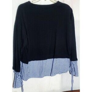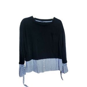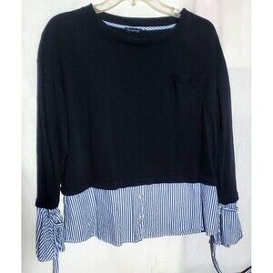 Layered Look Pinstriped Sweater Size L Mixed Media Wrist Tie Detail Chic