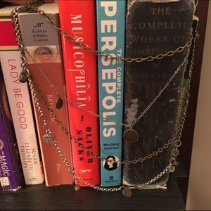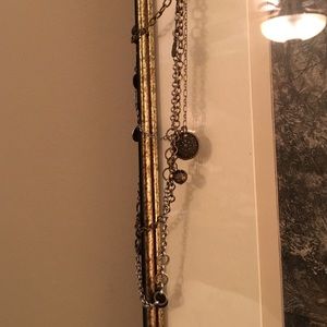 Layered boho necklace in fashionably tarnished silver and bronze. Little coins and charms dangle from each chain. This necklace is surprisingly versatile -- wear it to work one day and to a music festival the next! ๐
