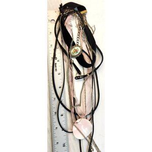 Layered Multistrand Necklace Set With Heart & Floral Pendant Choker to 18" Lengt