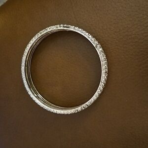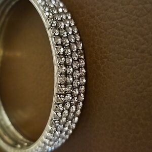 Enhance your style with the Layered Paved Rhinestone Bangle Bracelet. This stunning accessory features multiple layers of shimmering rhinestones, creating a dazzling effect that's perfect for any occasion. The intricate design and high-quality materials ensure it stands out, adding a touch of glamour and elegance to your wrist. Ideal for parties, weddings, or as a thoughtful gift.