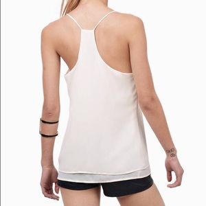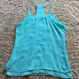 This strappy top is perfect for summer! It has a few picks, but nothing noticeable in pics! I did my best to show the "imperfections" Length: 25.5"