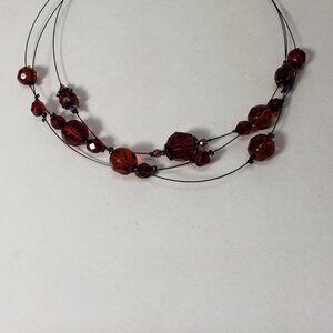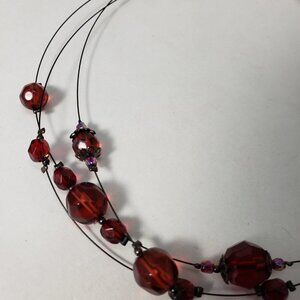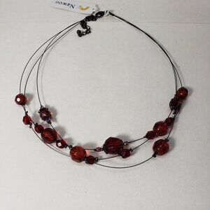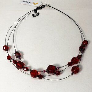Elevate your fashion game with this striking red beaded necklace. Crafted with gunmetal wire in a layered illusion design, this necklace features vibrant red beads that add color to any outfit. This necklace is a versatile accessory for women's fashion, perfect for enhancing your look with a touch of elegance and sophistication. Make a statement and stand out from the crowd with this chic piece today! NWT