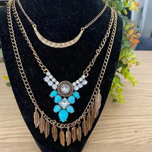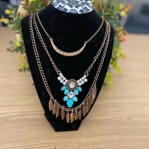 ▪️BRAND NEW ▪️TYPE: Layered Necklace ▪️METAL COLOR: Bronze ▪️DETAILS: Rhinestone ▪️LENGTH: 19” (060520)