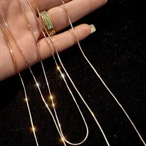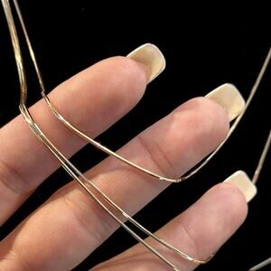 This product is a set of three separate rose gold snake chains, with a 14k gold finish. The chains are layered and made of 925 sterling silver. They feature a lobster clasp closure and are crafted in Italy. The elegant design in pink and rose gold tones adds a luxurious touch to any outfit, making it a versatile and stylish accessory.