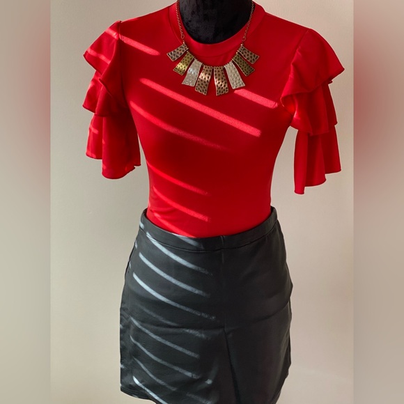 Beautiful red blouse with layered ruffle sleeves. Never worn, size small