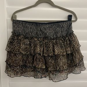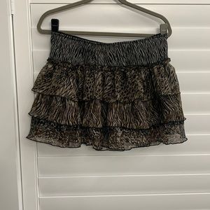Layered Ruffle Mini Skirt Animal Print Leopard & Zebra Side Zip missing top hook