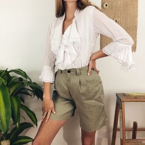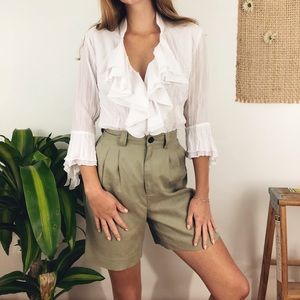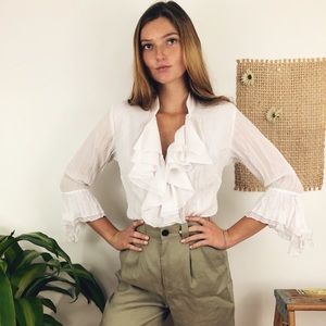 Cheaper on our own website! 🌻This vintage blouse is completely unreal! Beautiful draped ruffles along the chest and on the sleeve. Interesting crinkled texture and flattering v neck.