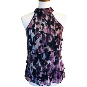 Tiered Ruffle look with a High Neck and back V with Ties. Beautiful piece!